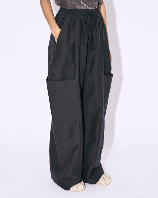 linen cotton satin bow silhouette pants
