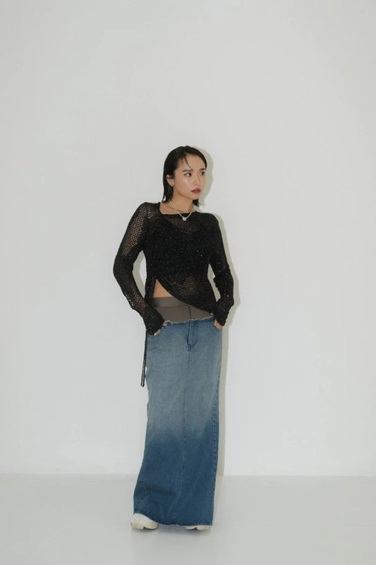 SOLD OUTasymmetry sheer lamé knit
