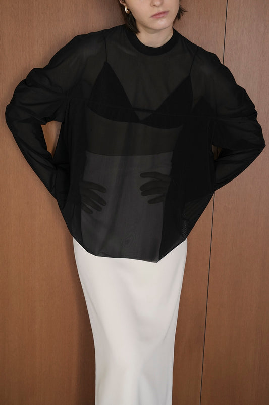 sheer mesh curve sleeve tops