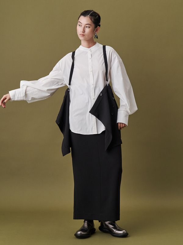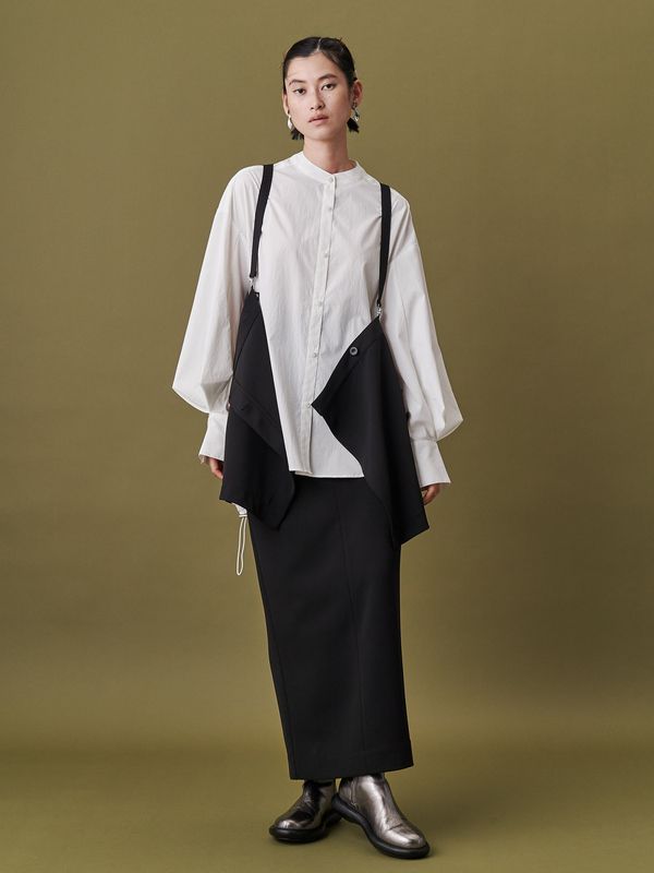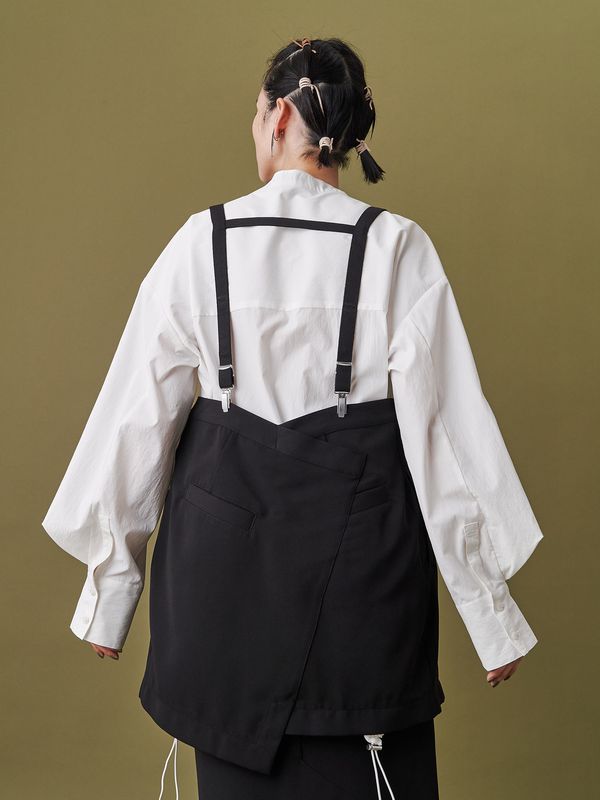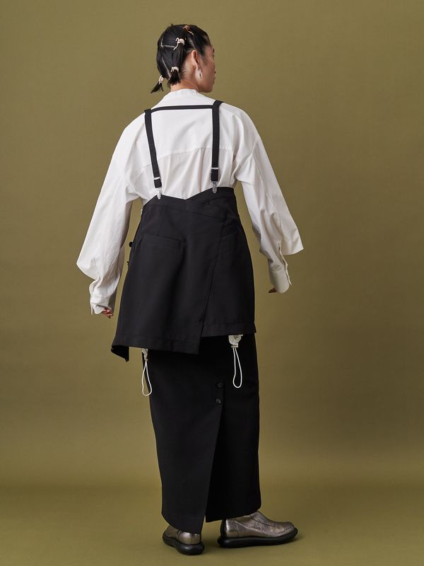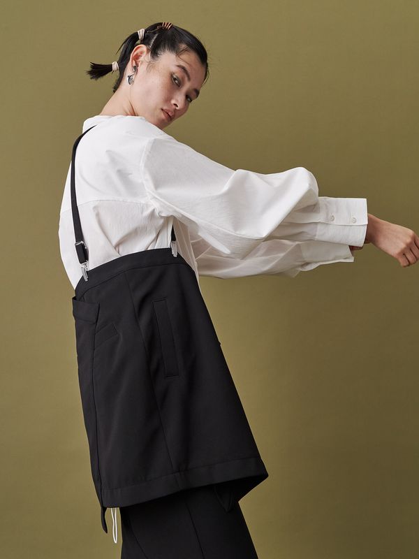外罩式片裙可分開單獨穿著,和現有的單品做搭配或疊穿造型,展現細膩層次。若想拆卸吊帶,在裙頭的內側也特別設計了隱藏扣環的細節,確保穿著時的穩定性。