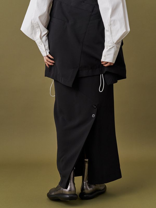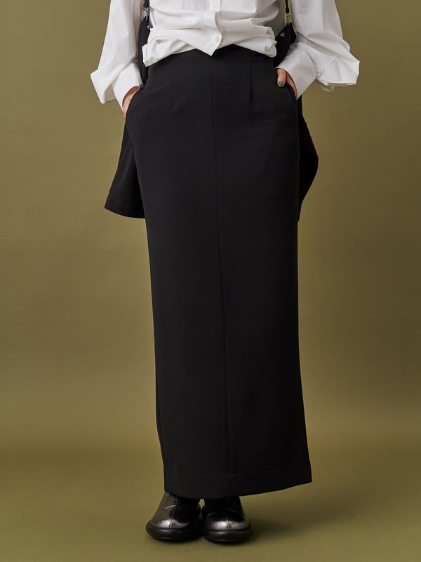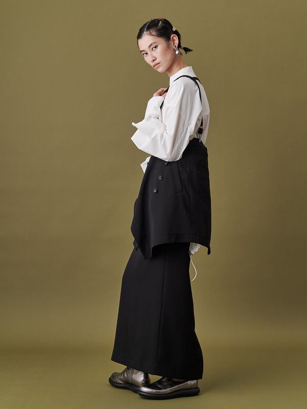 以貼合身形的包覆感剪裁,搭配外罩式的片裙及可拆式的吊帶設計,高腰設計一路延伸至胸下,勾勒俐落優雅的輪廓,並巧妙修飾身形比例,打造修長視覺效果。