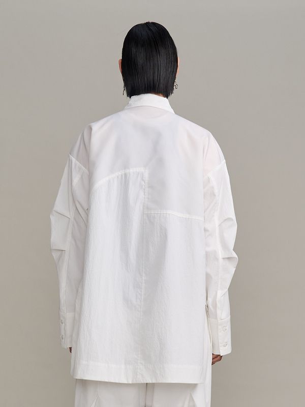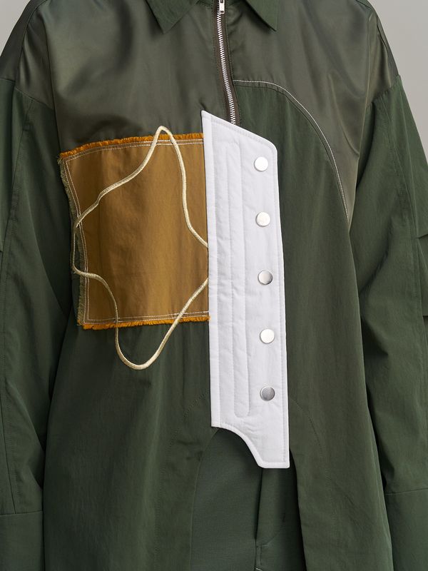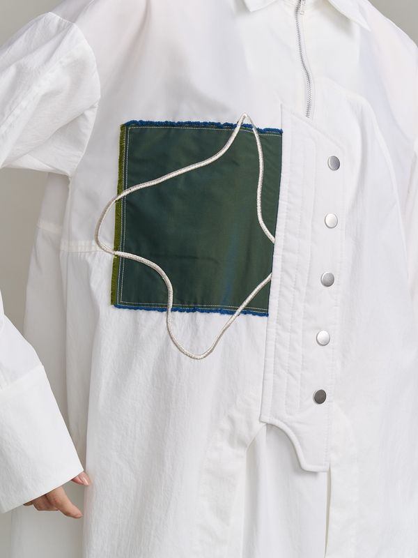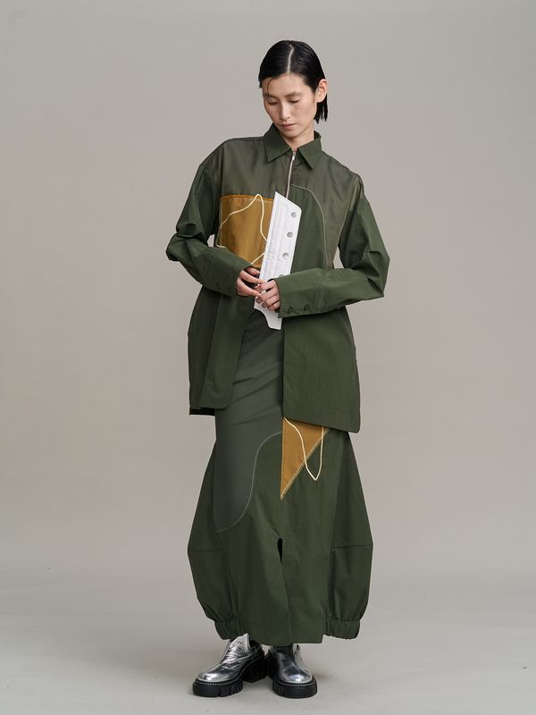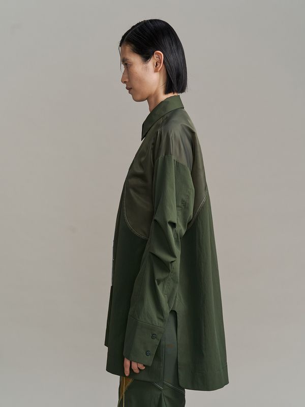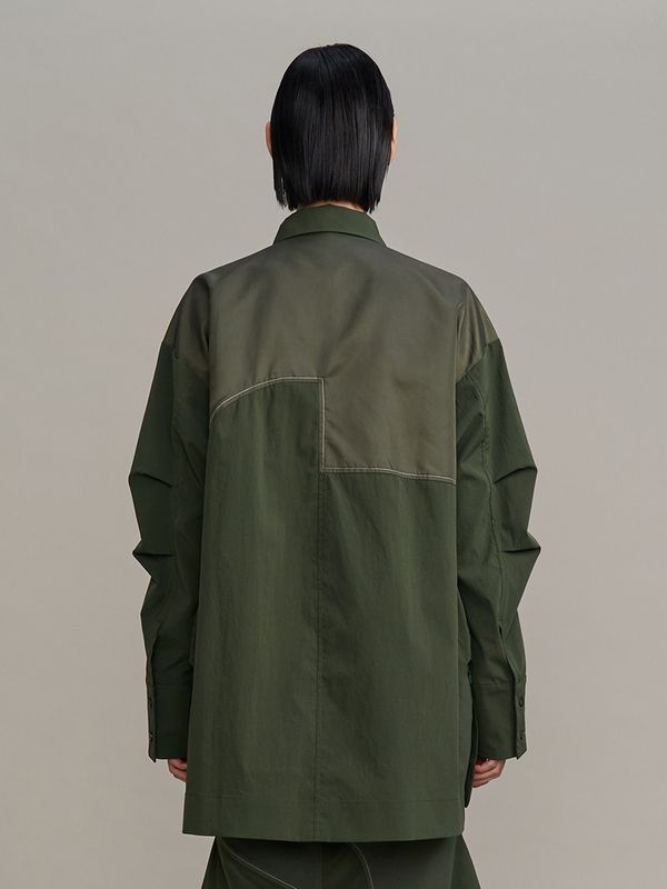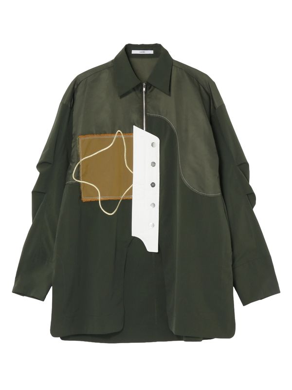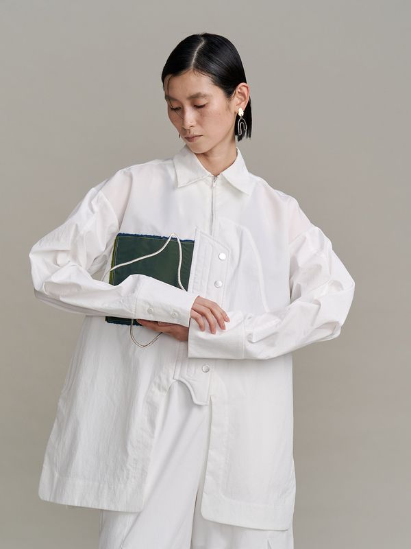 採用了像夾克一樣的拉鍊設計,讓這件襯衫能單穿,也非常適合當作輕薄的外衣來搭配。