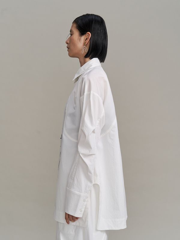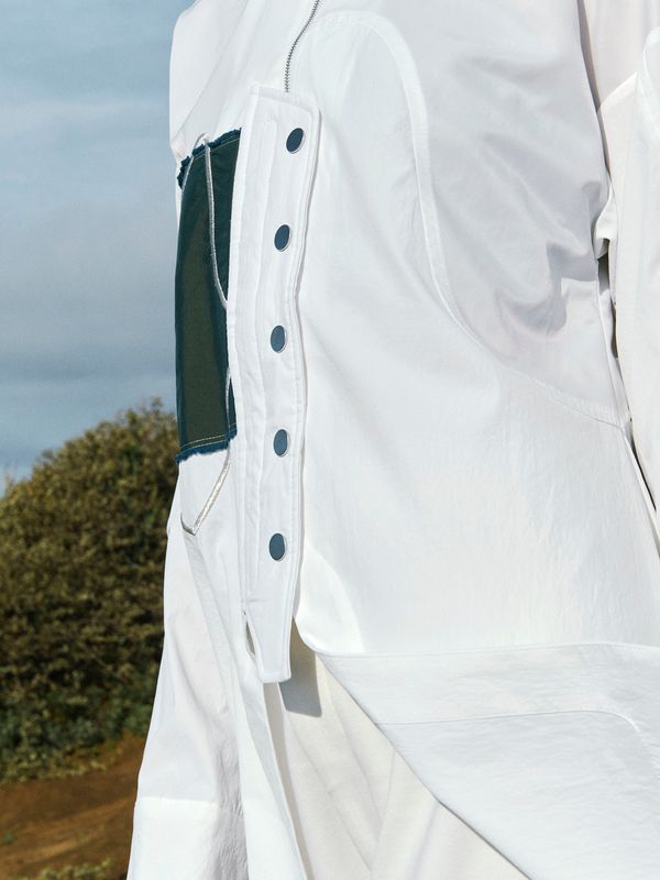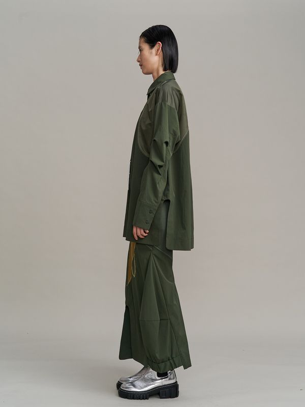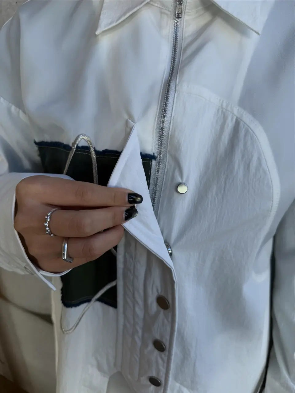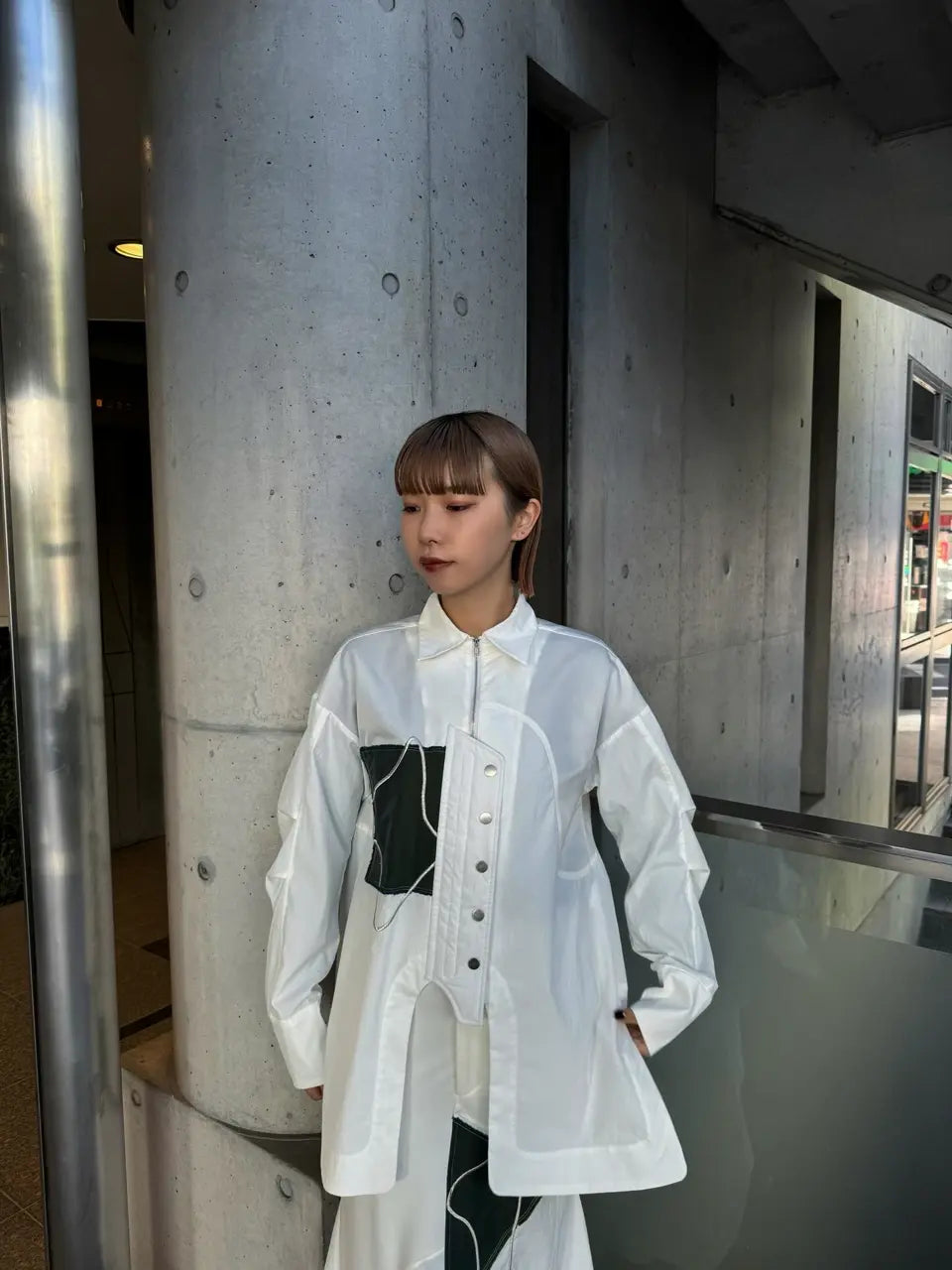 採用了像夾克一樣的拉鍊設計,讓這件襯衫能單穿,也非常適合當作輕薄的外衣來搭配。