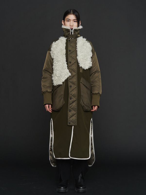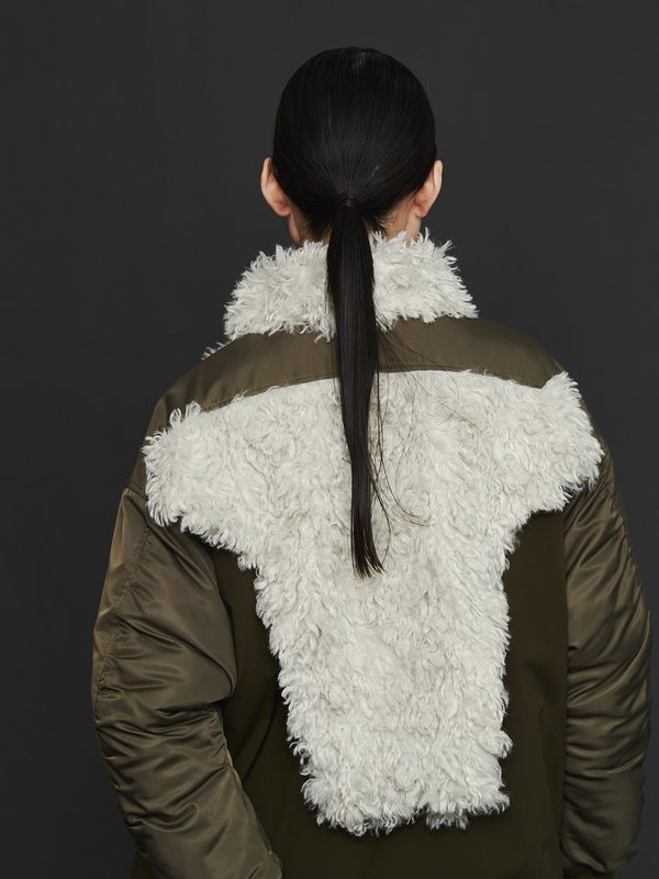 以 MA-1 的俐落線條為基底,拼接上蓬鬆的長毛材質,在第一眼就能感受到它與一般冬季外套的不同。