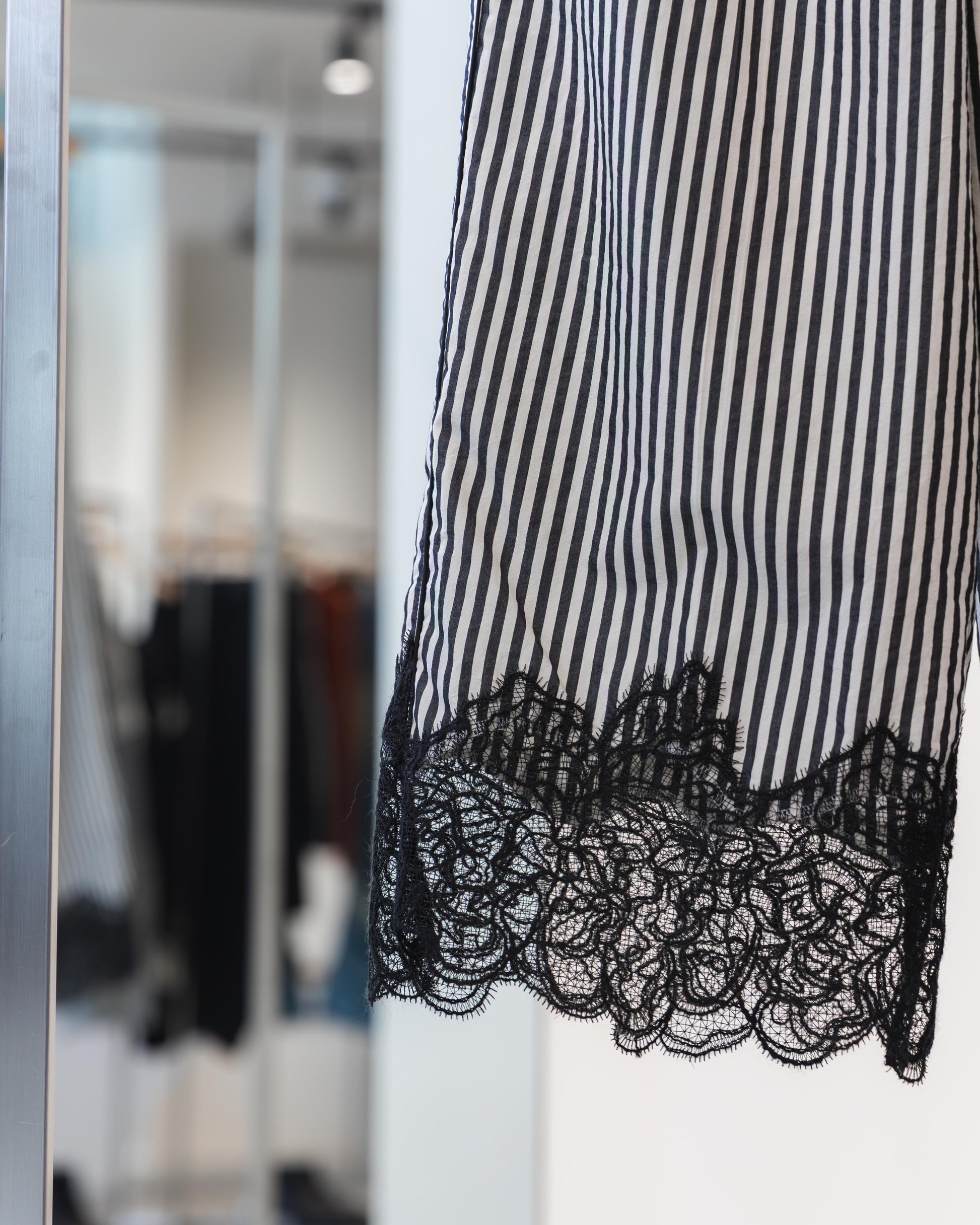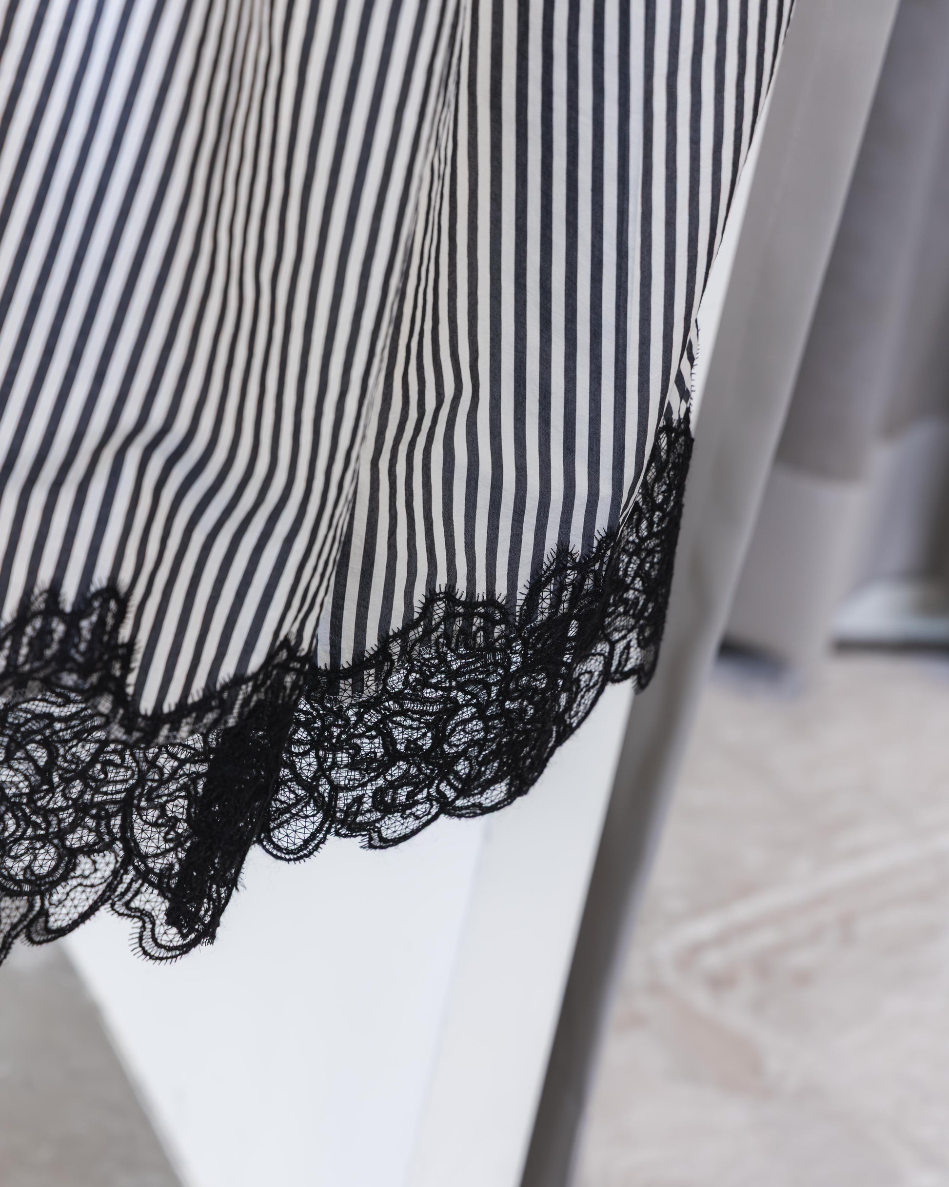 穿上它時,建議搭配一雙俐落的高跟鞋,讓蕾絲細節在足尖晃動,將原本放鬆的廓形瞬間提煉成洗鍊的都會風格。這種從容與優雅並存的著用感,正是專為追求生活質感的時髦人士所設計。
