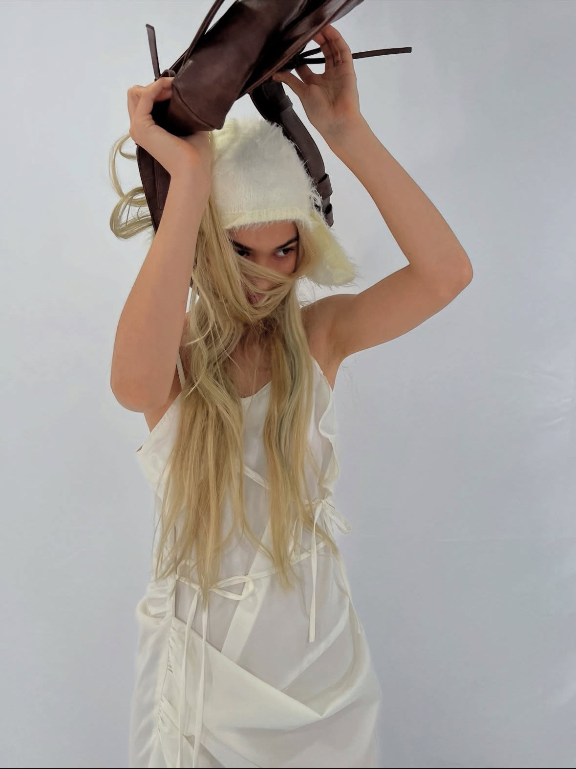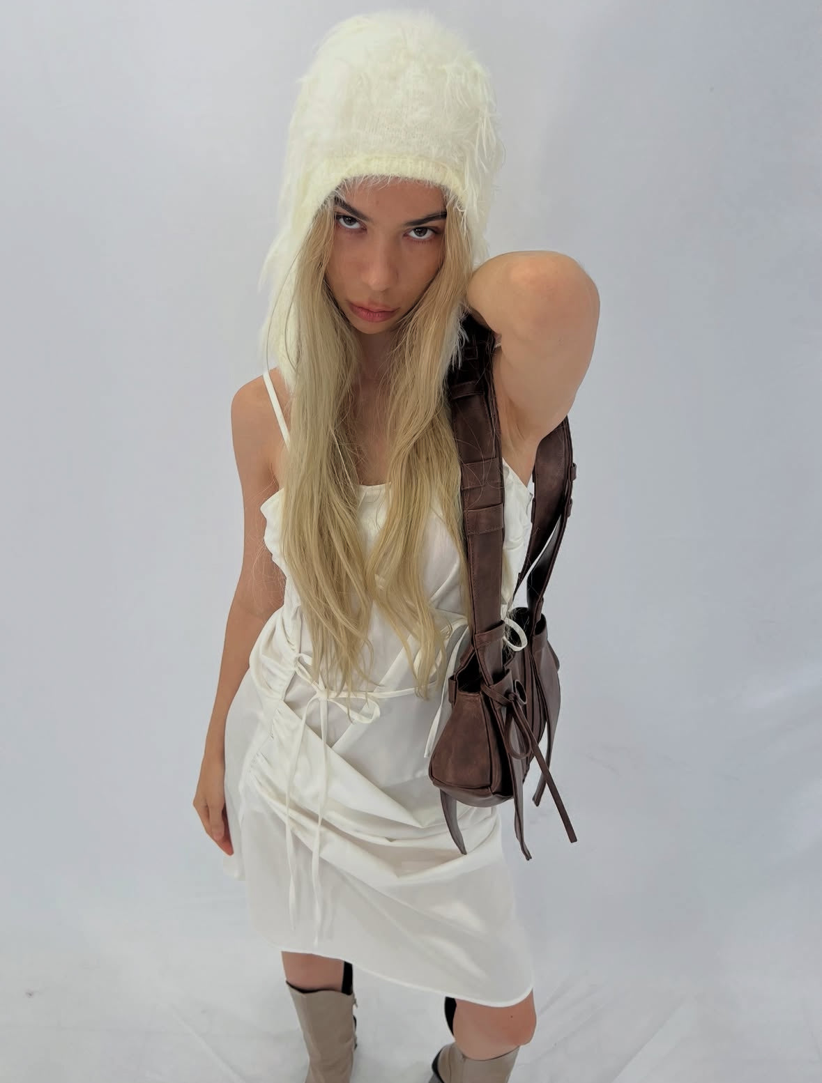 採用柔軟針織線材編製,帽型貼合舒適,絨毛線條作為細節點綴,增添層次與視覺趣味。造型個性卻不張揚,輕鬆融入日常休閒或通勤穿搭,營造摩登俐落感。