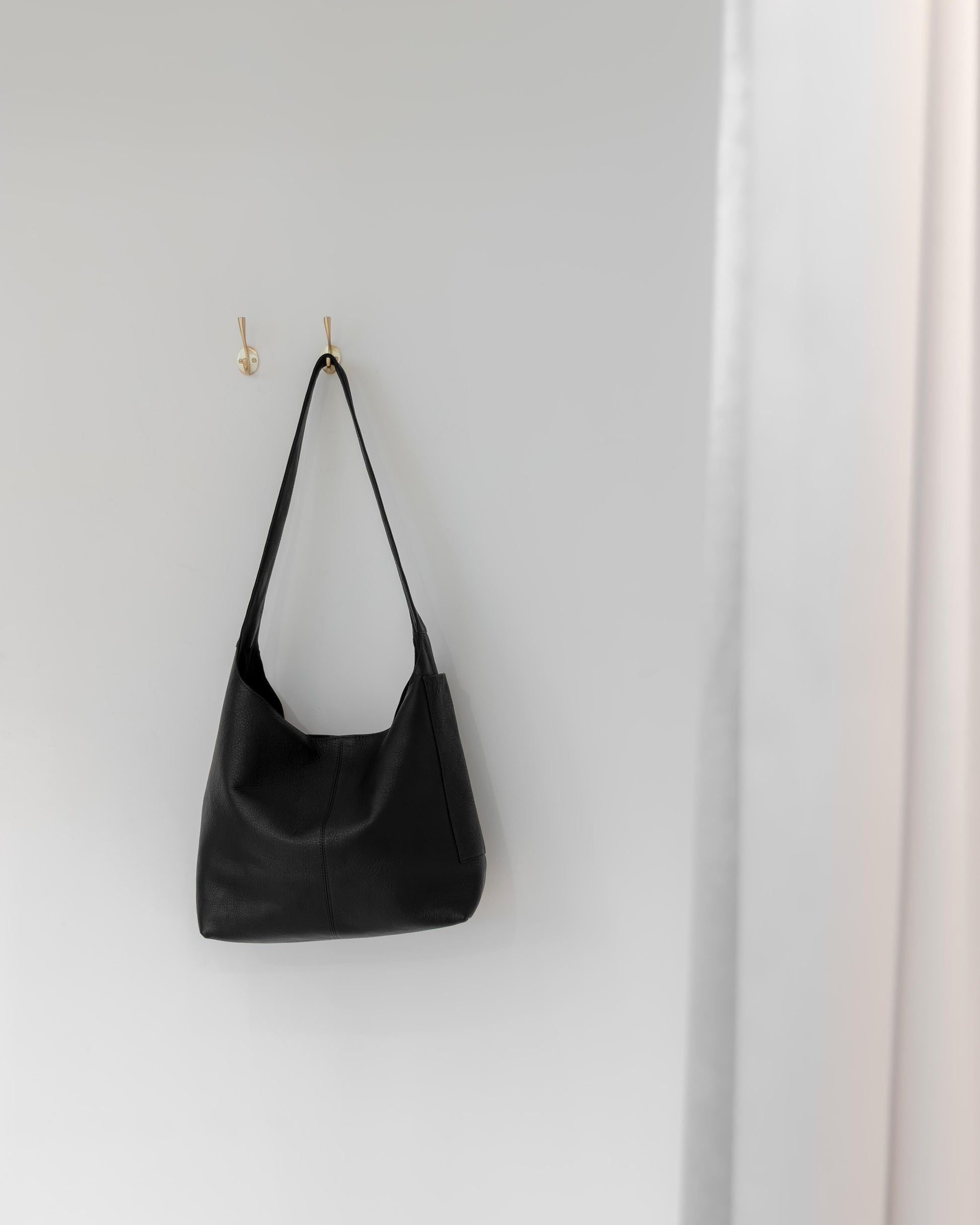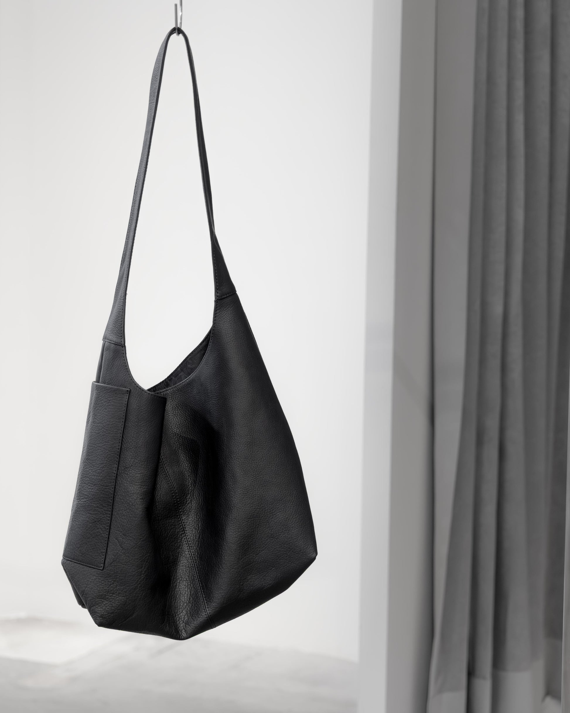 設計圓潤且有存在感,配上寬肩帶,穿戴時更為舒適。包包內部空間寬敞,日常必需品輕鬆收納。外側有一個大小剛好的袋子,可以放下500ml水瓶。內部還有拉鍊袋,可以安全放置錢包等貴重物品。