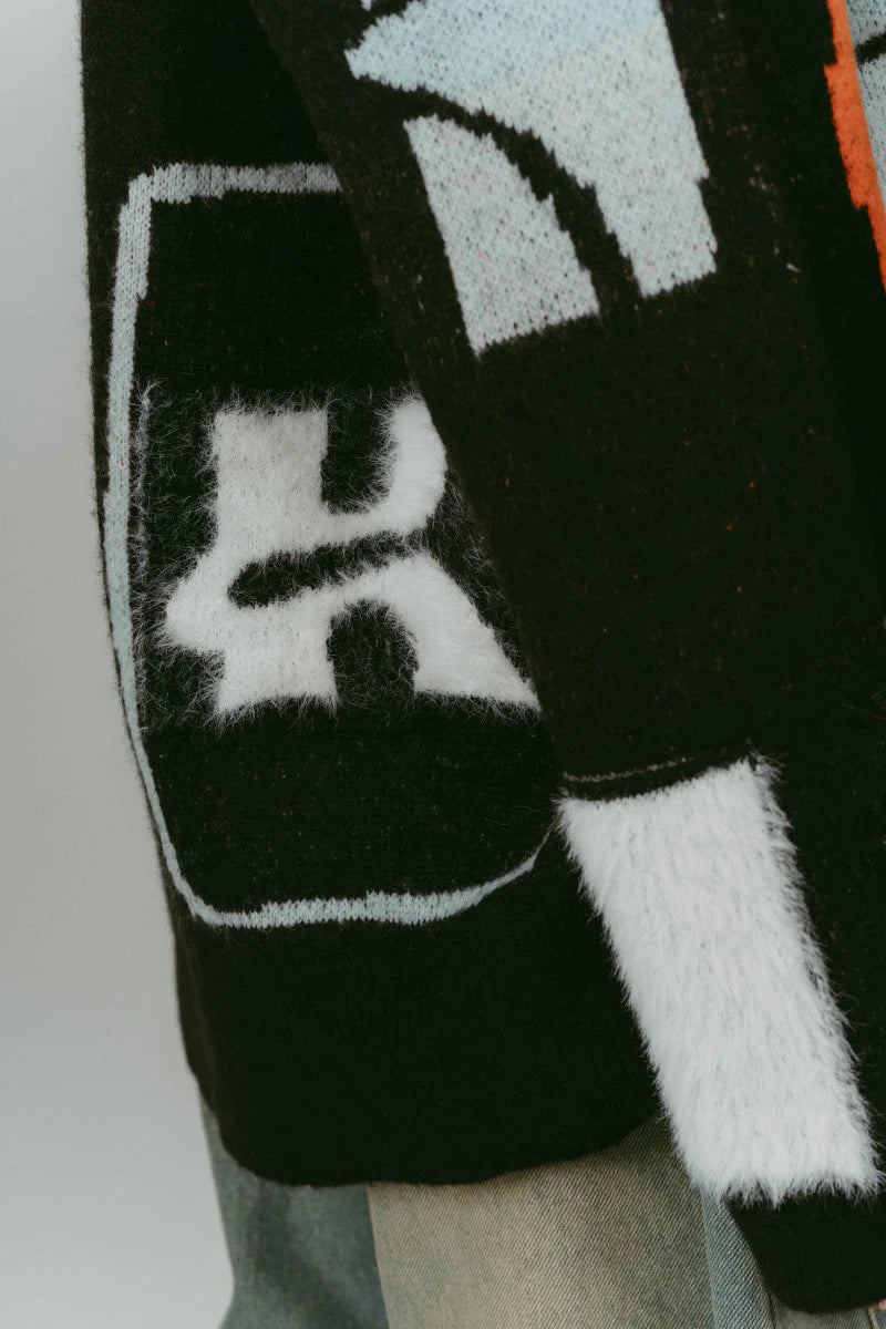 滿版的圖像設計搭配提花織紋,加上細節處的毛料拼接,讓整體更有層次。