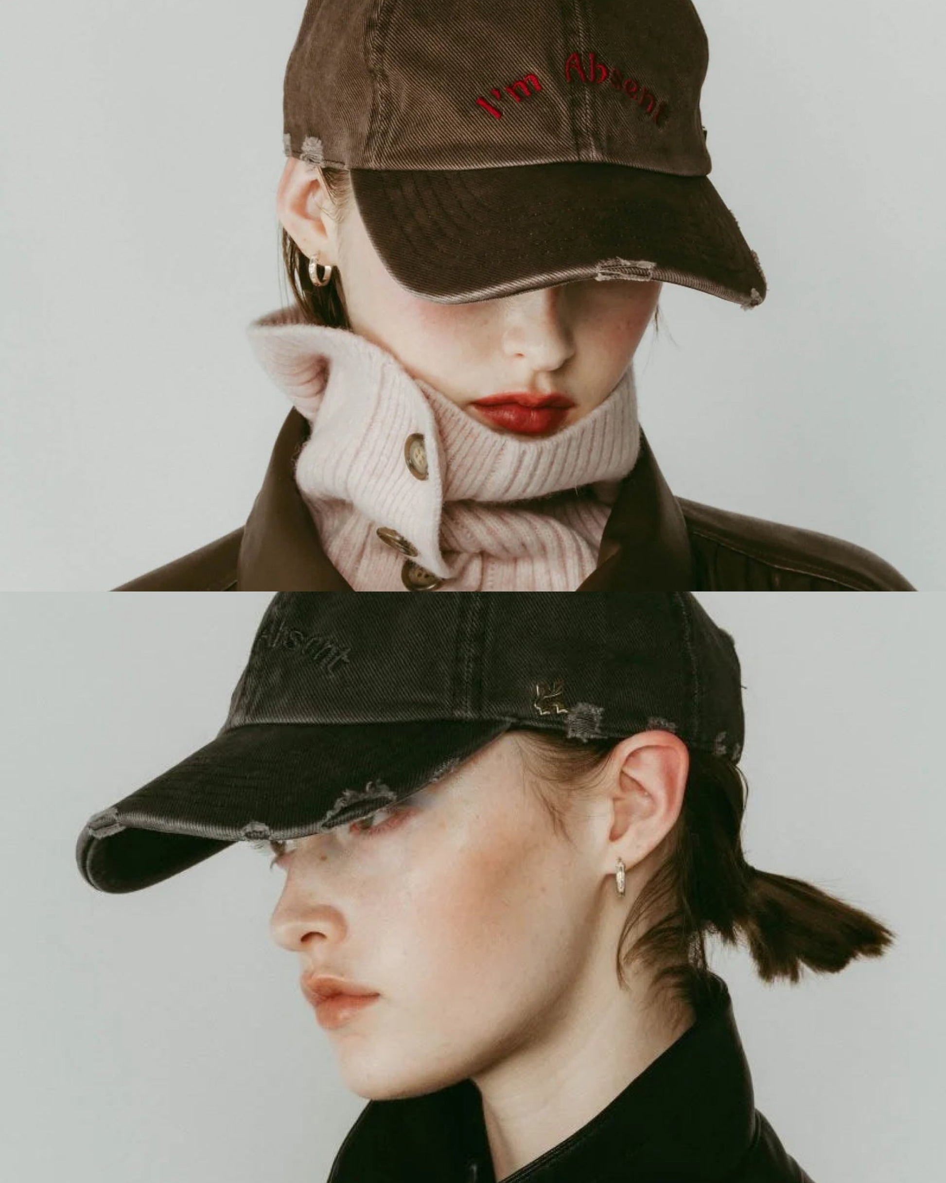 以低調方式展現個性的訊息棒球帽,在帽身繡上本季主題 “I’m Absent”,帶有一點距離感的語氣,讓整體更有態度。