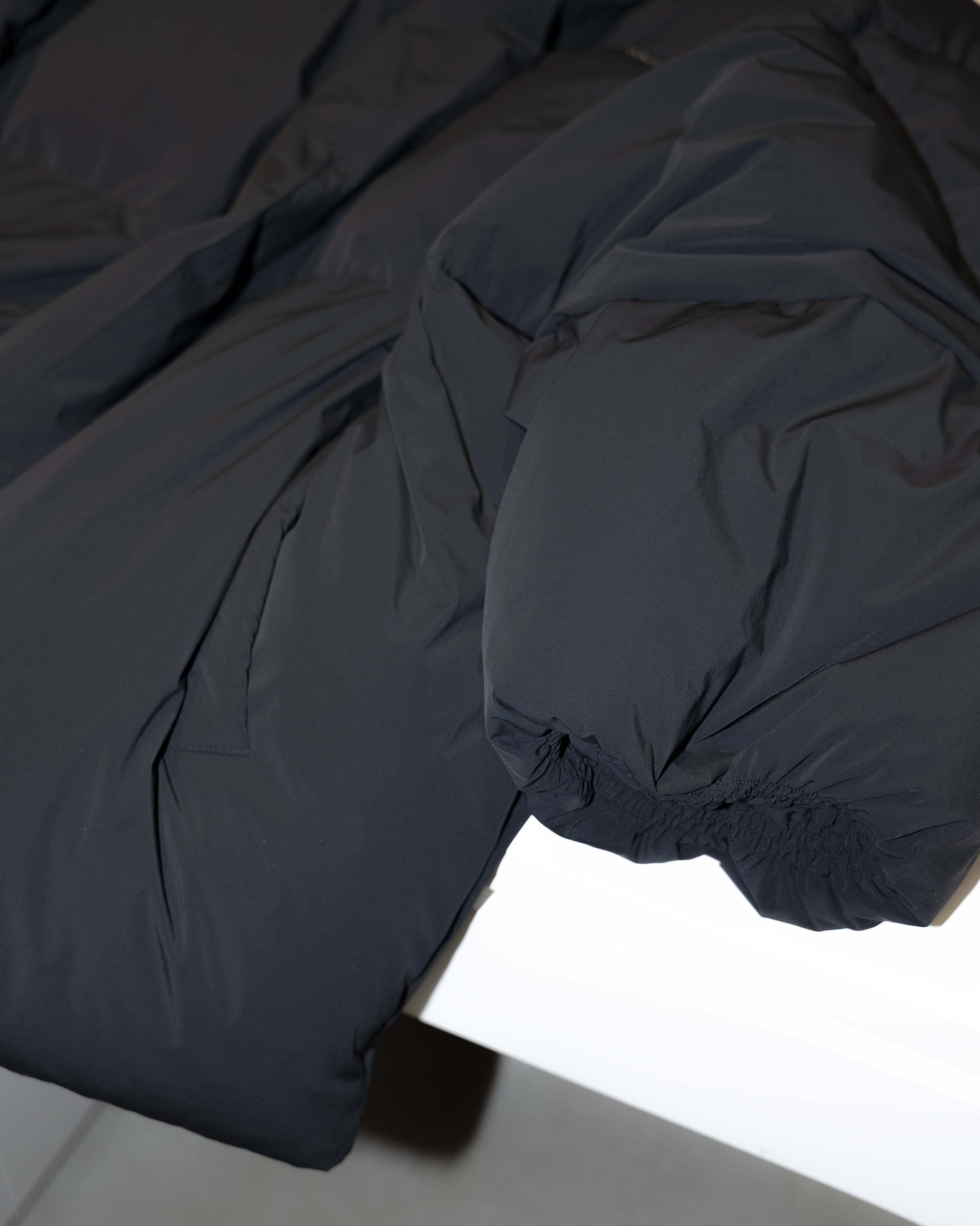 高立領以大弧度設計而成,即使高度偏高也不會貼口不適,保暖與舒適兼具。下擺附可調節抽繩,可依氣溫與搭配微調線條,在輪廓與保暖性之間取得平衡。