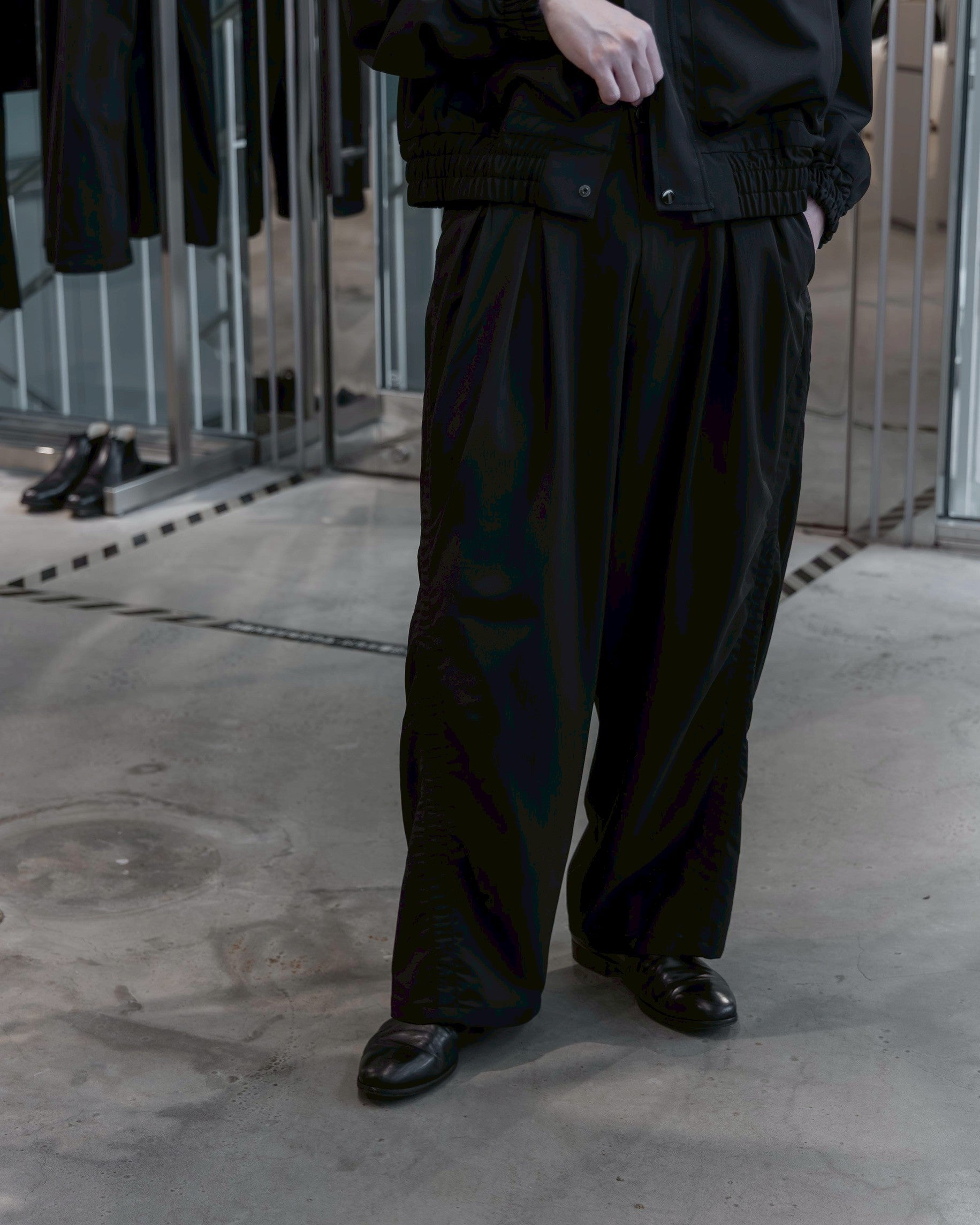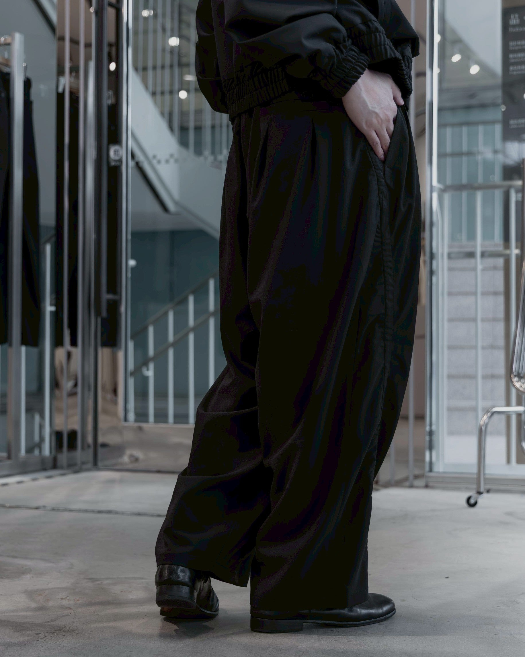 考慮到日常穿著的便利性,腰部採用彈性抽繩設計,讓這件充滿設計感的單品擁有如同運動褲般的舒適度,隨性套上便能完成充滿份量感的造型。