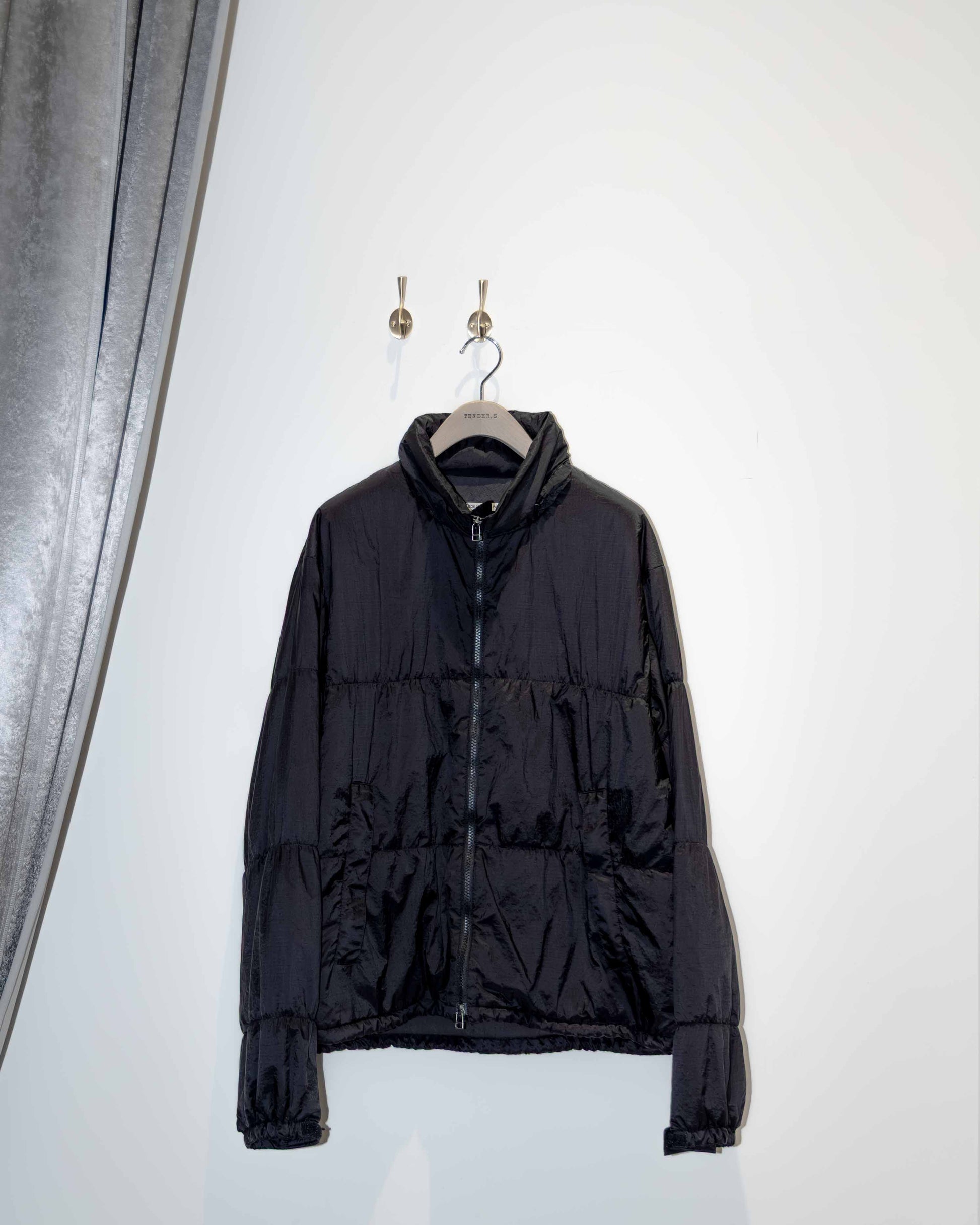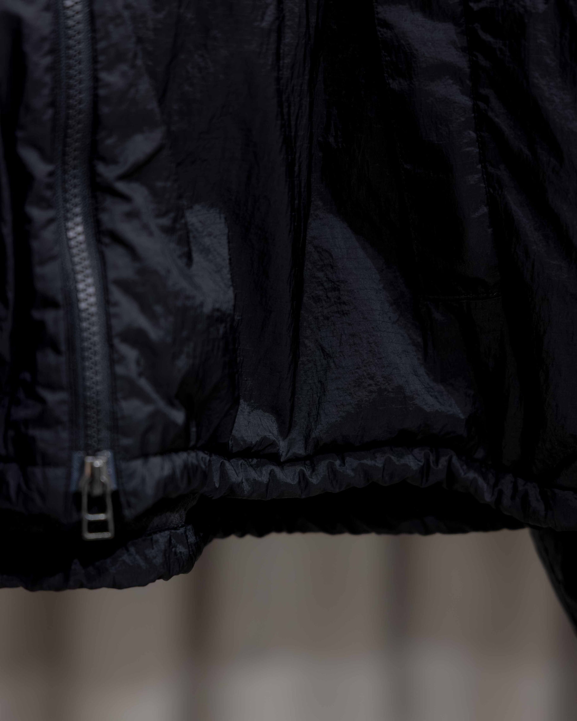 為了模仿經典羽絨外套歷經多年穿著後、變得更柔軟輕盈的自然風貌,特別在車縫線部分製造出輕微的皺縮效果,重現羽絨服特有的立體感。