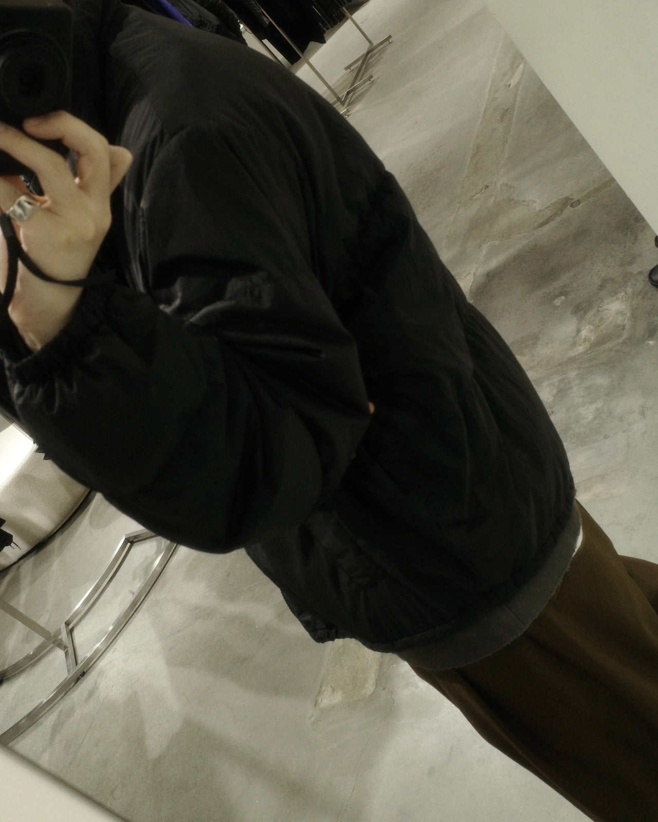 輕微的鋪棉,整體呈現自然的空氣感,具有保暖效果並且不會臃腫。當遇到非常寒冷的天氣時,輕盈放鬆的剪裁,不僅適合內搭厚重衣物,甚至疊穿在其他外套的外面、以多層次的方式穿搭都相當自然好看。