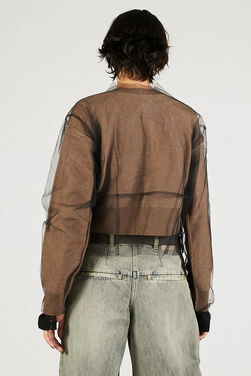 可正反兩穿,一面是簡約的針織質地,另一面則拼接輕透薄紗,能依搭配與心情切換風格。