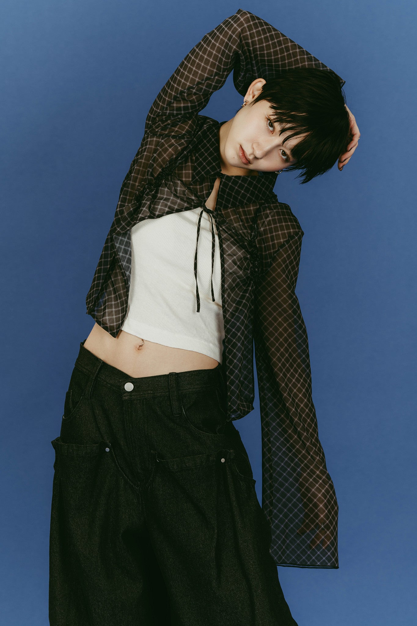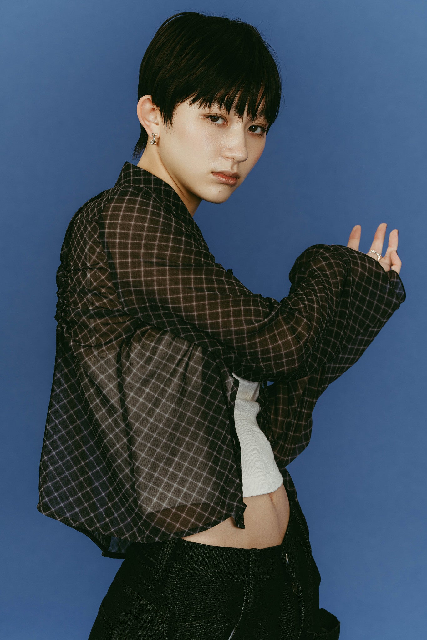 選用輕盈纖薄的半透明面料,透過若隱若現的視覺層次展現出洗鍊且具張力的女性特質。