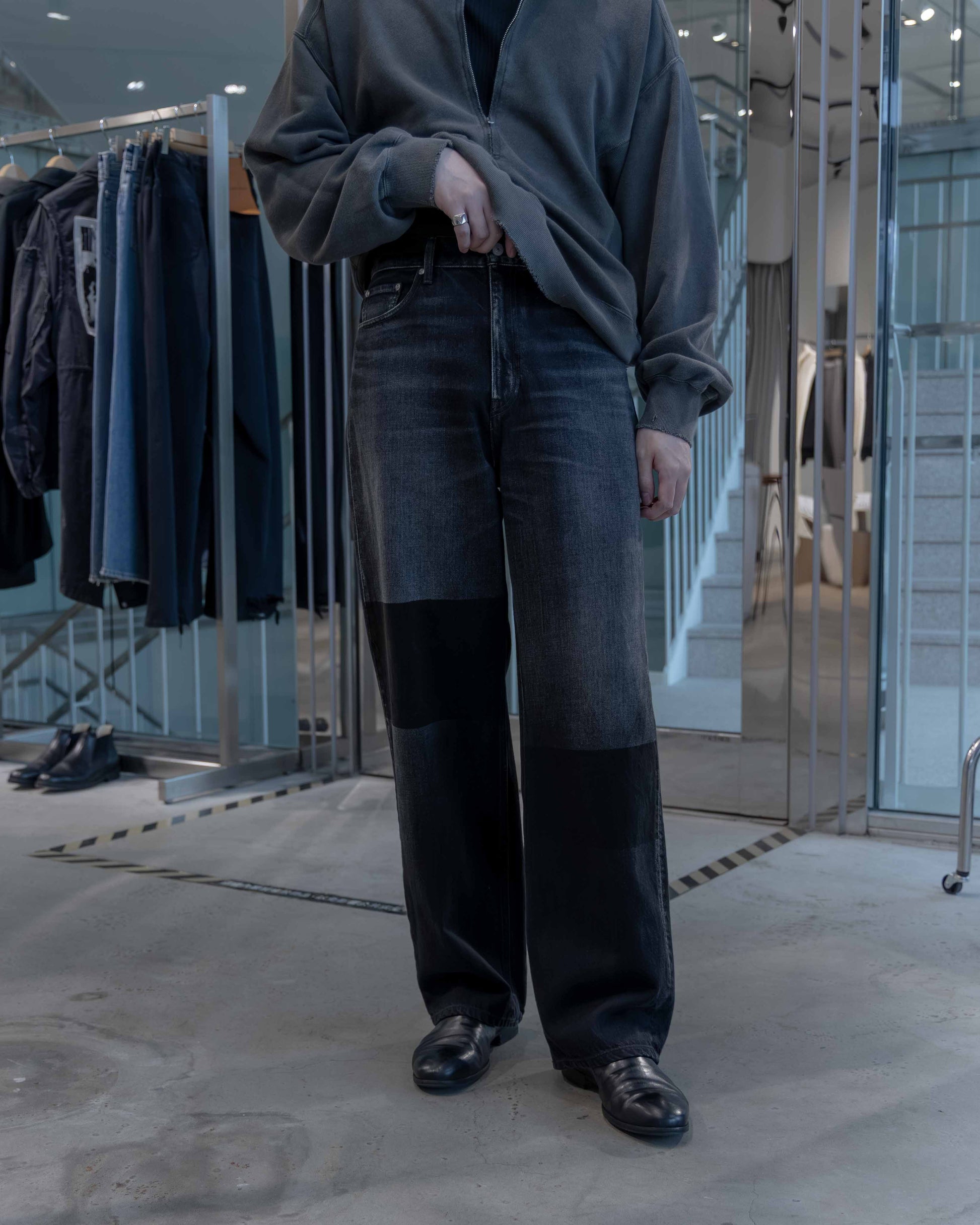 黑色款以丹寧與深黑色色塊拼接,營造出細緻的明暗對比。材質柔軟輕膚,隨動作自然產生微妙的垂墜與流動感,散發隨性而沉穩的氣息。