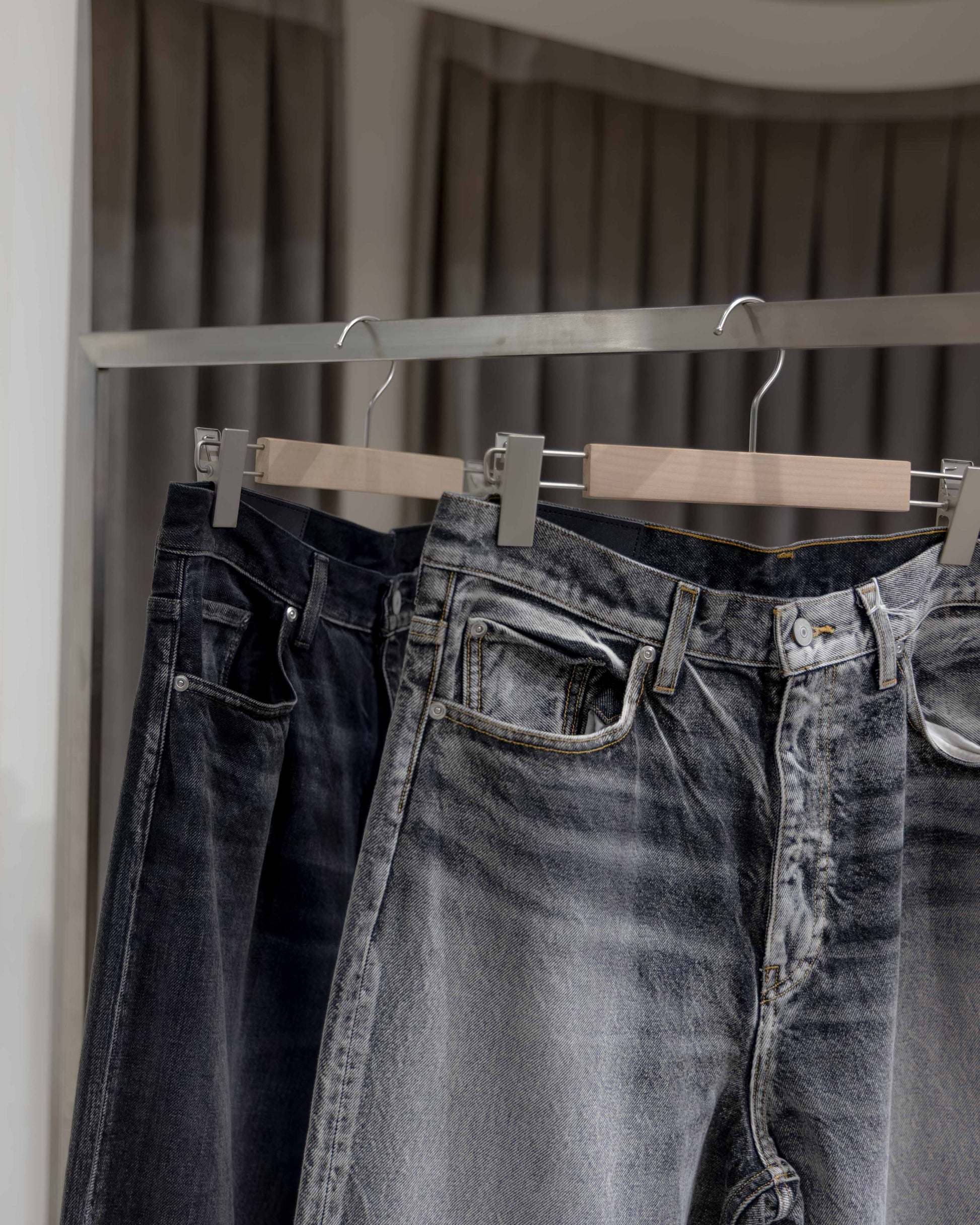 保留五口袋與金屬釦的經典結構,細膩縫線與層次刷色更突顯出丹寧特有的深度與質感。