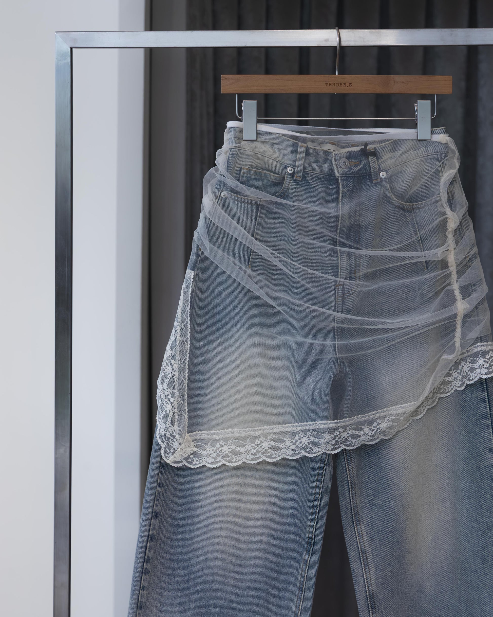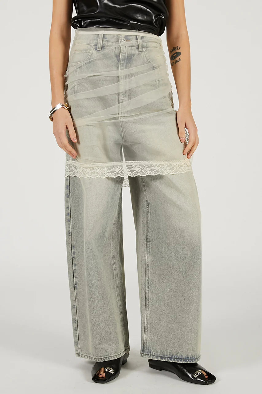 tulle skirt layered denim