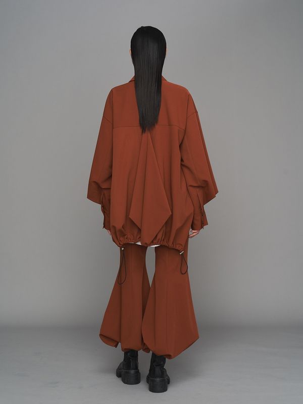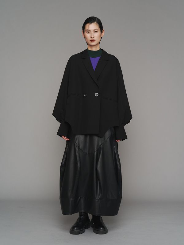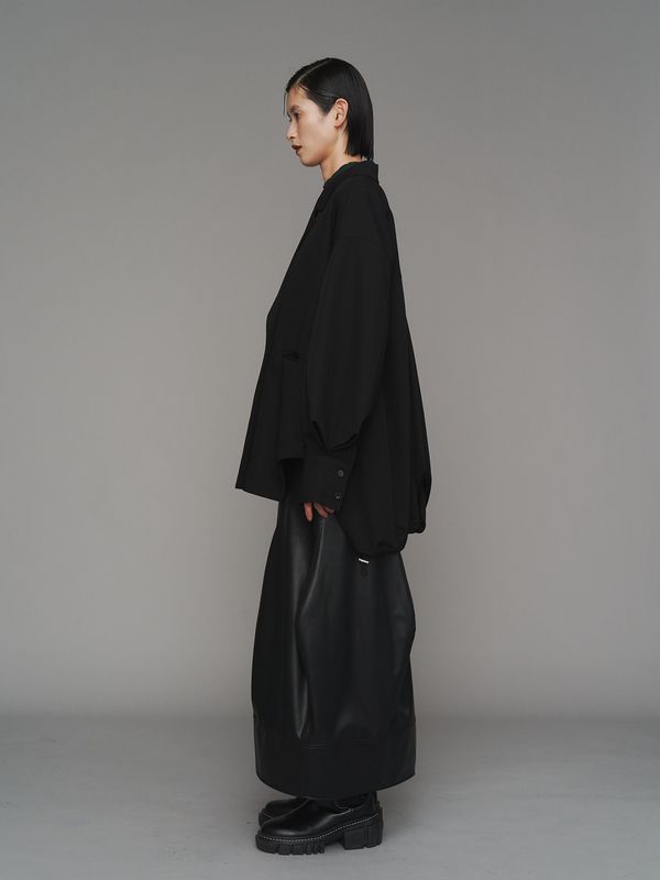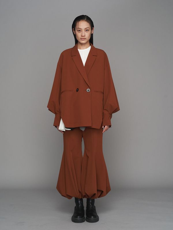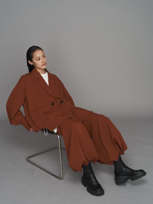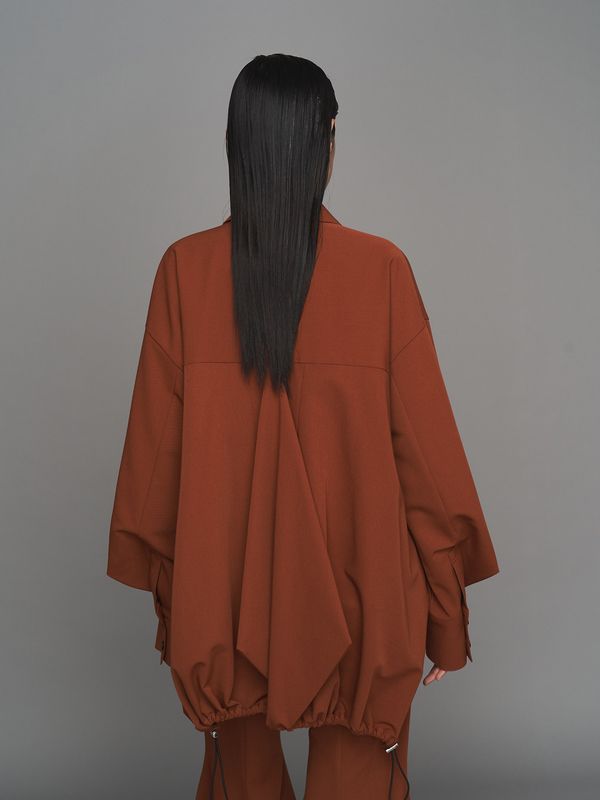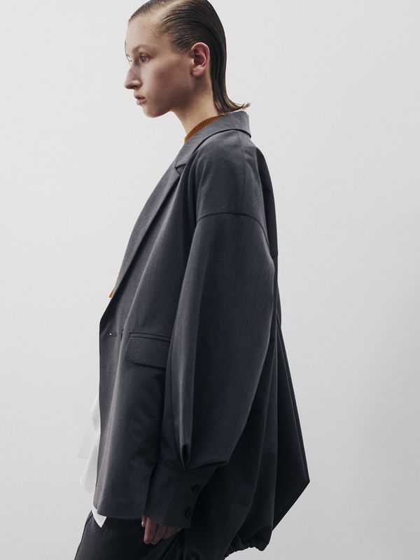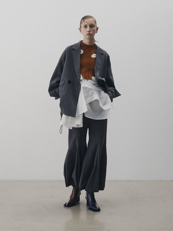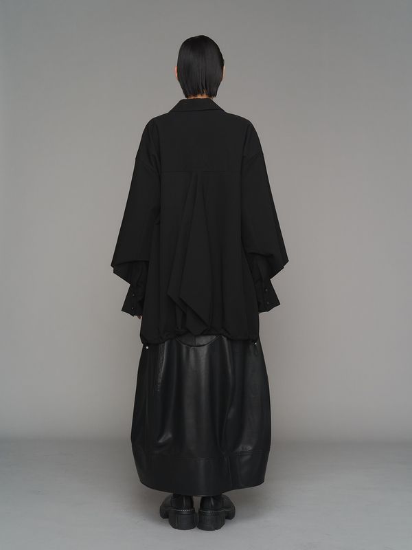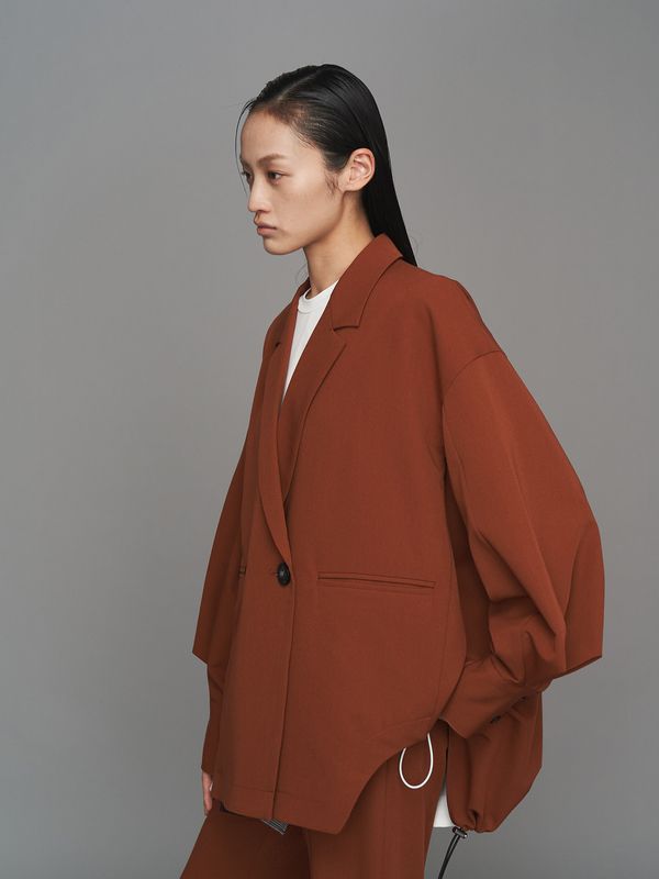 袖口的 W 抽褶設計與背面的相同細節,營造出立體層次感與柔美輪廓,使整體造型更具設計感。