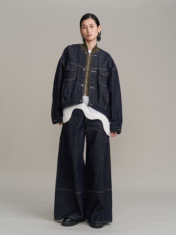在側邊加入了弧形織帶拼接,巧妙地將立體剪裁與穿著的舒適感結合在一起。對於喜愛丹寧卻又擔心面料過於生硬、限制活動的穿著者來說,這道側邊織帶就像是為身體預留了呼吸空間,在勾勒出充滿張力的曲線之餘,依然能確保整日的自在。